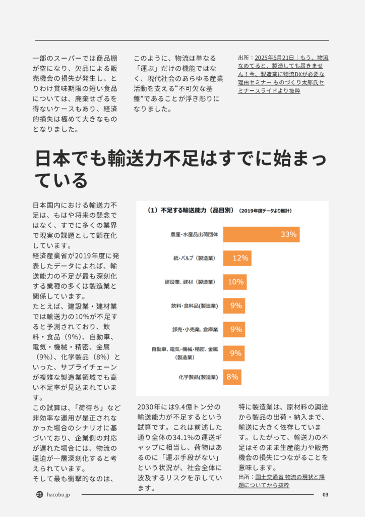 輸送力不足で生産・納品に影響が出ている製造業の方