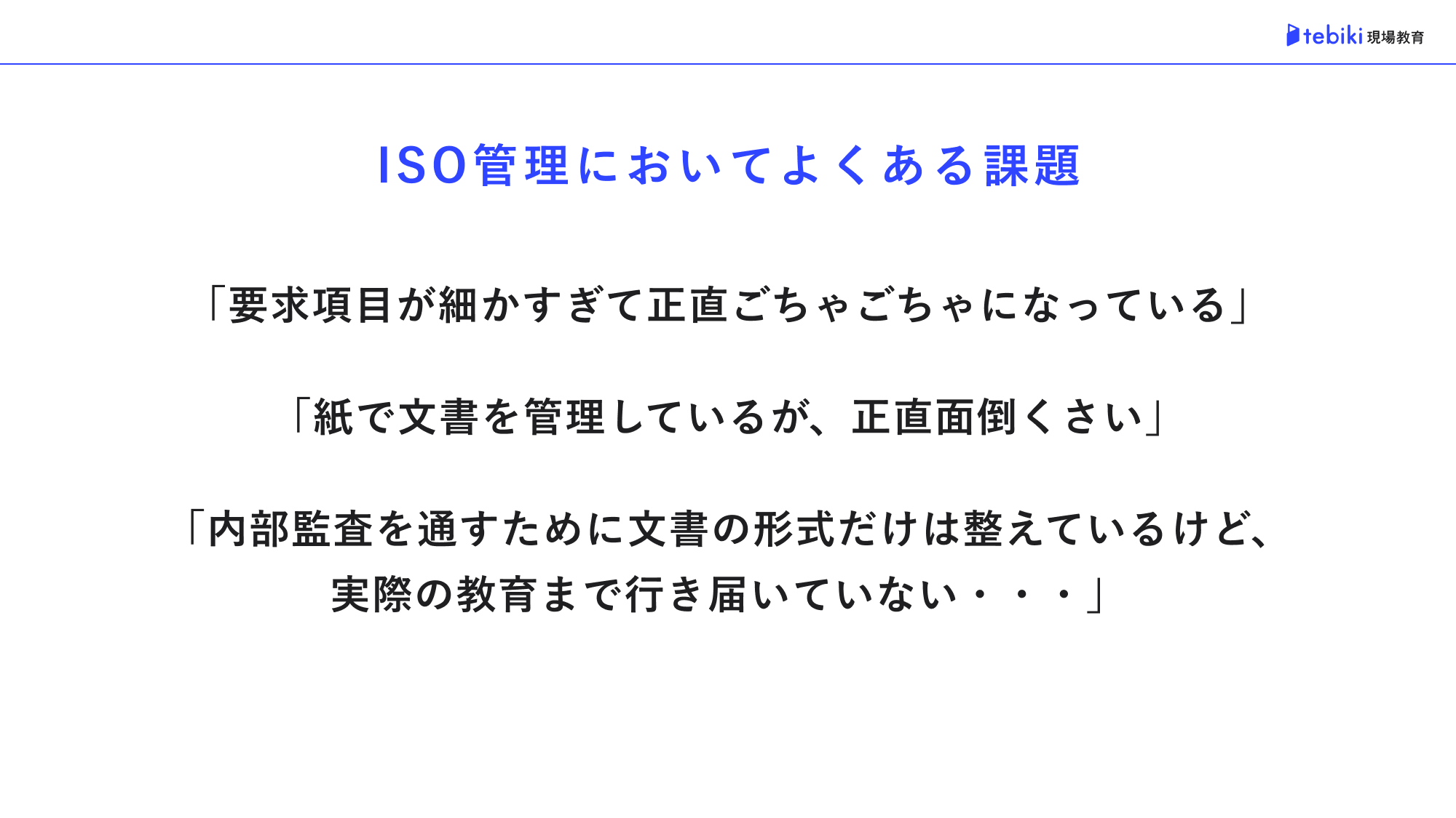 - tebiki現場教育を用いたISO9001の要求事項に対応する運用イメージ