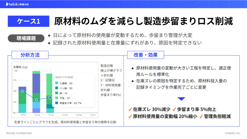 - 特定の工程で99%のロス削減を実現した事例