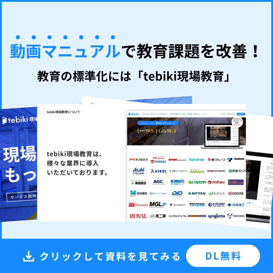>>安全意識を高める動画マニュアル「tebiki現場教育」のサービス資料はこちら