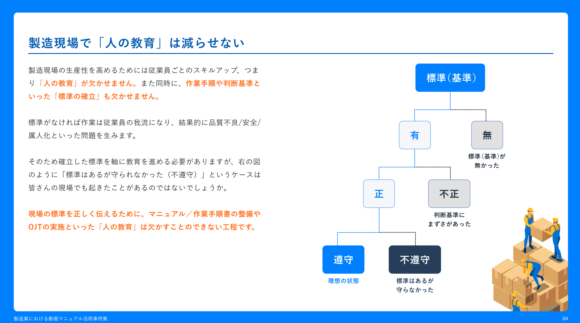 - 「品質不良の削減」を目的とした動画マニュアル活用事例