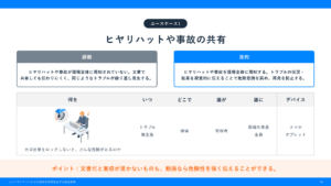 ヒヤリハット事例を共有し、現場の危険感受性を高めたいと考えている方