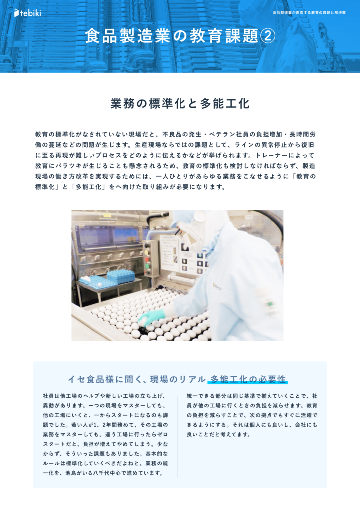 食品製造業が直面する教育の課題と解決策~教育工数を1 /10に削減したカイゼン事例付~