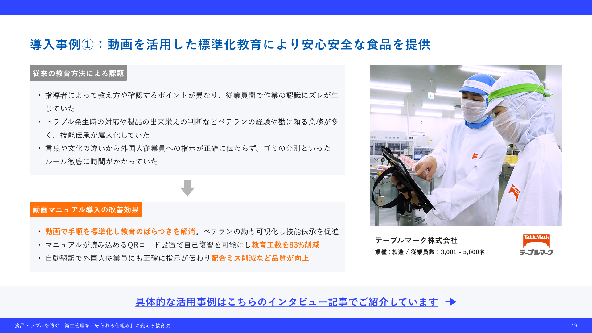 動画マニュアルを活用した食品製造業の教育改善事例3選