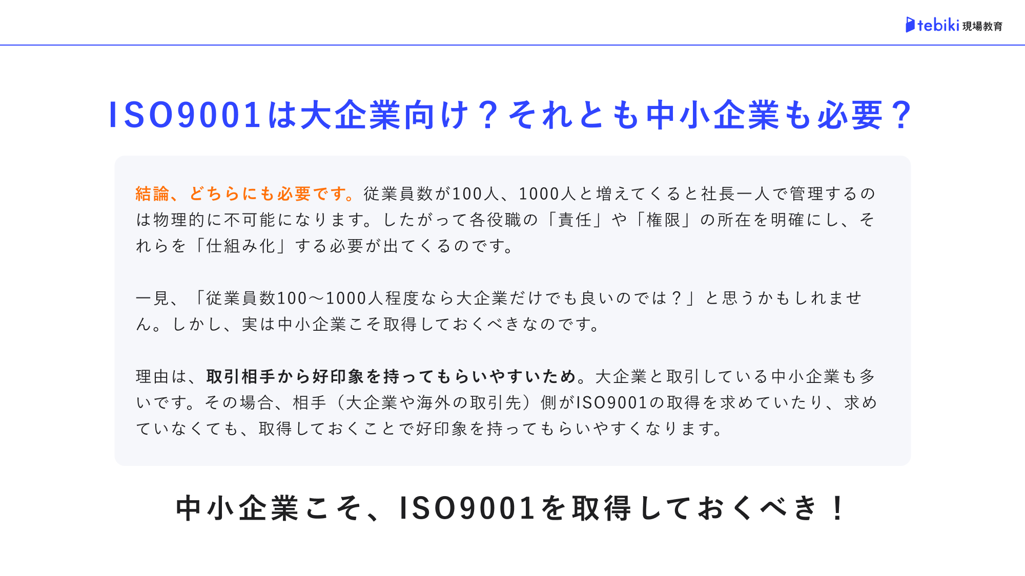 - ISO9001は大企業向けの規格?中小企業にも必要なのか?