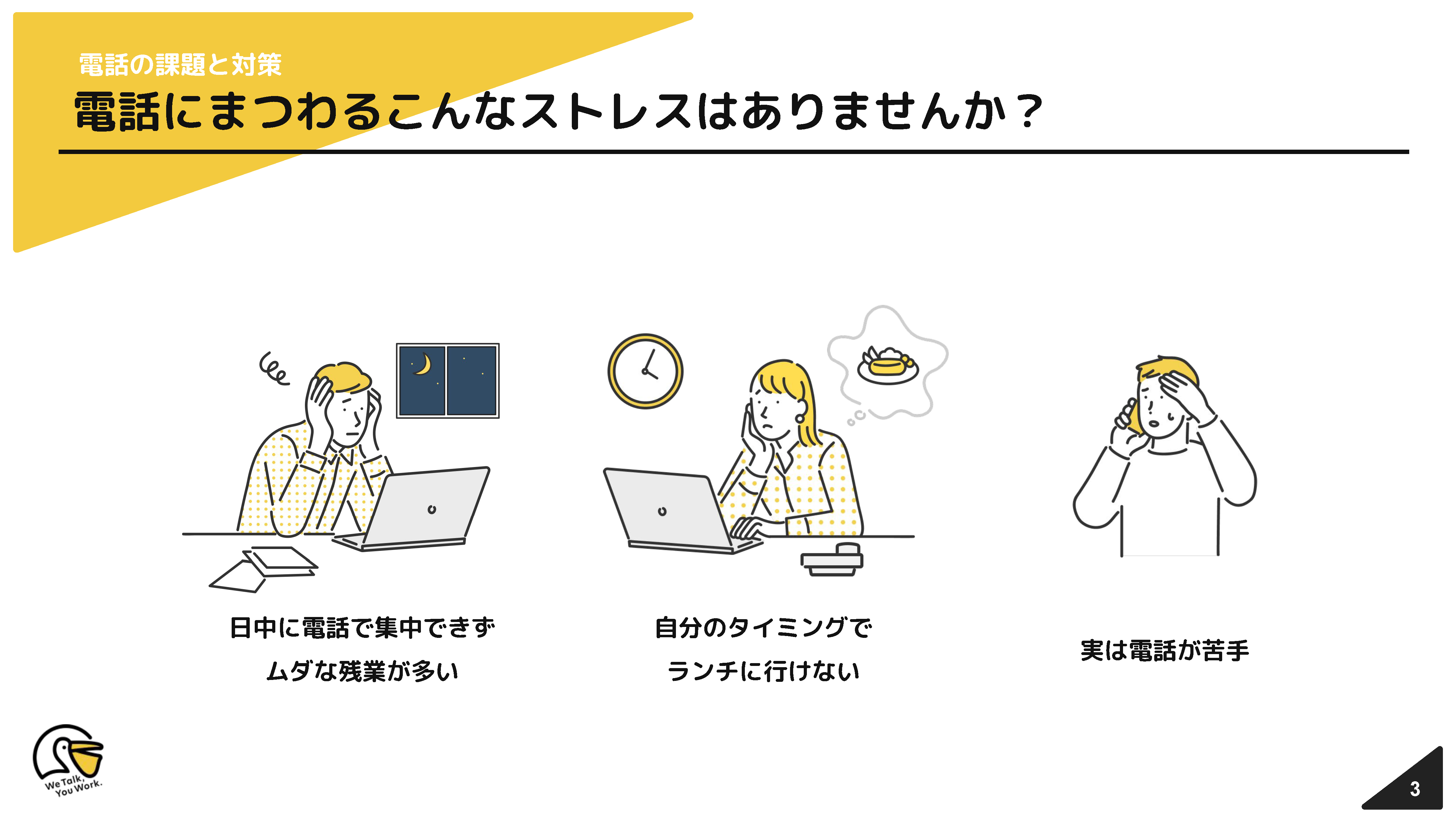 - 電話対応で業務が中断され、集中力や生産性の低下を感じている方