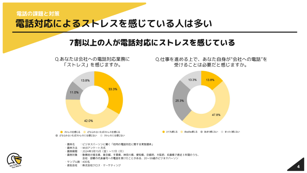 - 電話対応に関する従業員のストレス実態調査データ