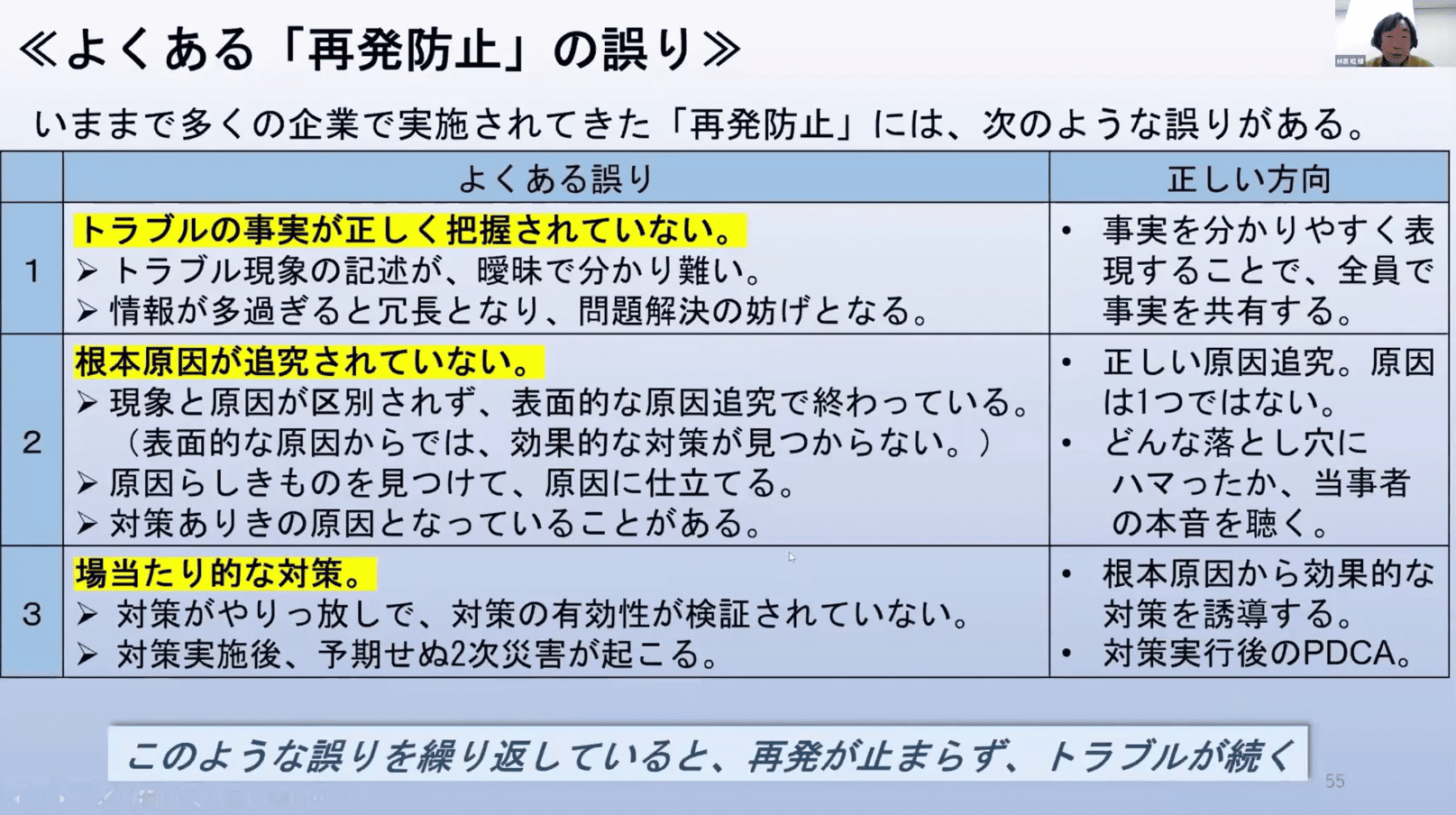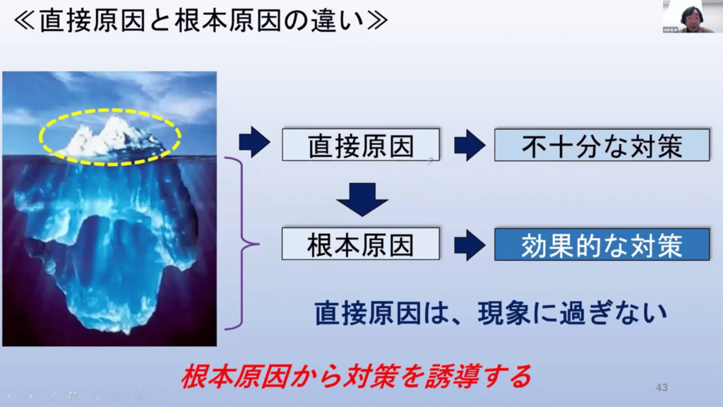 それは、事故の根本原因が追究されずに安易な対策が講じられ、未然防止へのアプローチができていないからです。