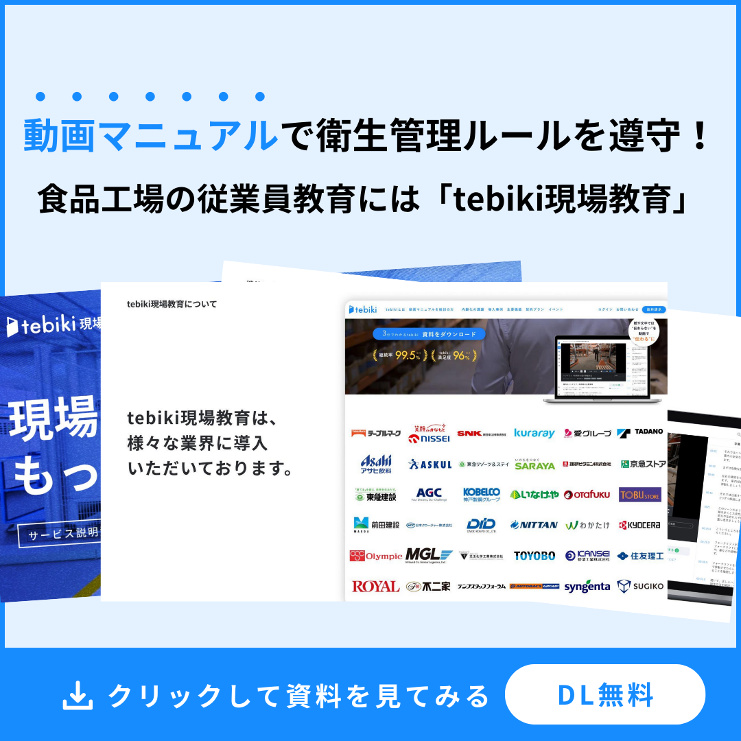 tebikiを導入して、作業を標準化して食品衛生状況を向上させた企業を3社紹介します。