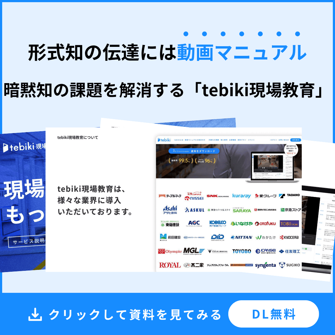 この記事で紹介した動画マニュアル作成ツール「tebiki」の資料は無料で以下のリンクからダウンロード可能ですので、ぜひチェックしてみてください。